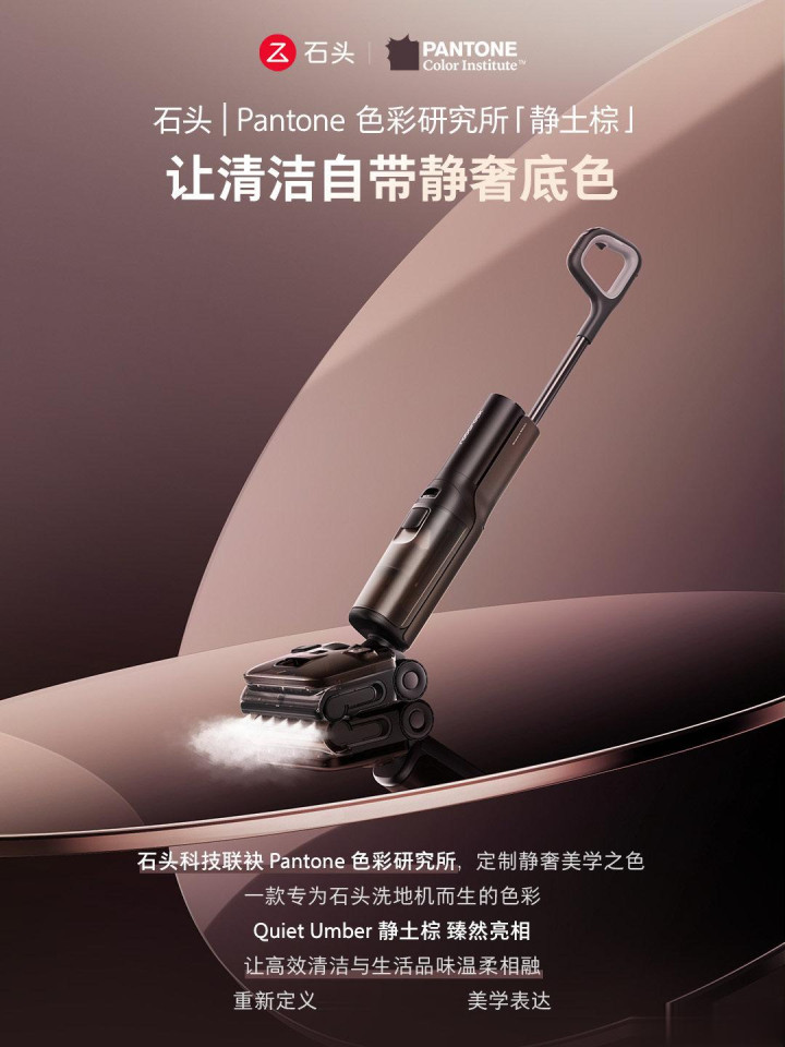 洗地机这边,石头刚拿了奥维云网的两个冠军:蒸汽洗地机市场规模全国第一,A30系列洗地机也是全国第一。这次展会他们和人民日报健康客户端联合发布《国民家庭地面清洁标准白皮书》,算是给行业定了个健康清洁的参考标准。新品石头A30ProSteam2.0用上180°C活性蒸汽和90°C热水洗地,能有效清除油污和细菌,还拿到了TÜV南德母婴级认证。配色上跟Pantone色彩研究所合作,推出定制色“静土棕”,看着挺有质感。