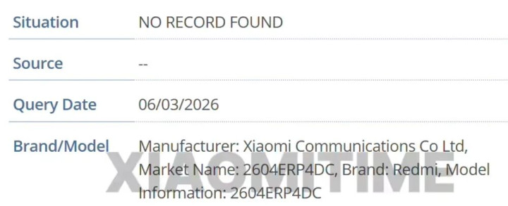 GSMA IMEI 数据库中出现了 2604ERP4DG、2604ERP4DC 和 2604ERP4DI几个产品型号,分别对应面对不同市场的版本,其中2604ERP4DC为国行版。