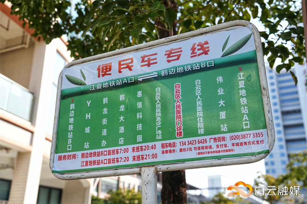 白云区人民医院距离最近的江夏、鹤边地铁口接近1公里,为方便患者就医,白云区人民医院联合新穗巴士公司,开通便民健康直通车服务,市民从江夏地铁A出口或鹤边地铁B出口出站后,无需再换乘或步行,即可通过该便民车直接抵达医院。