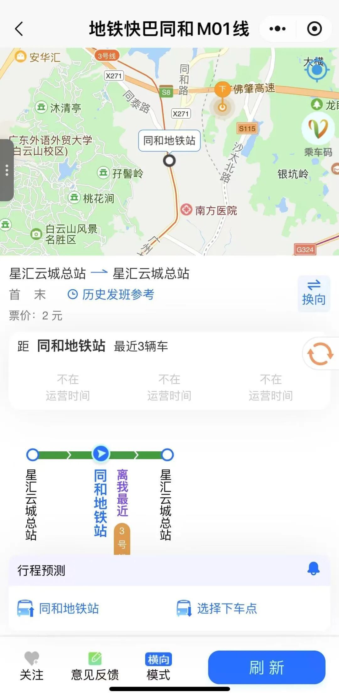 停靠站点:星汇云城总站、地铁同和站D出口、星汇云城总站。